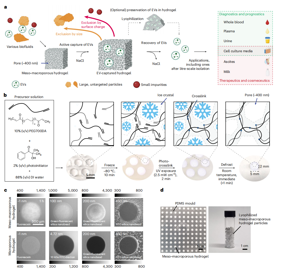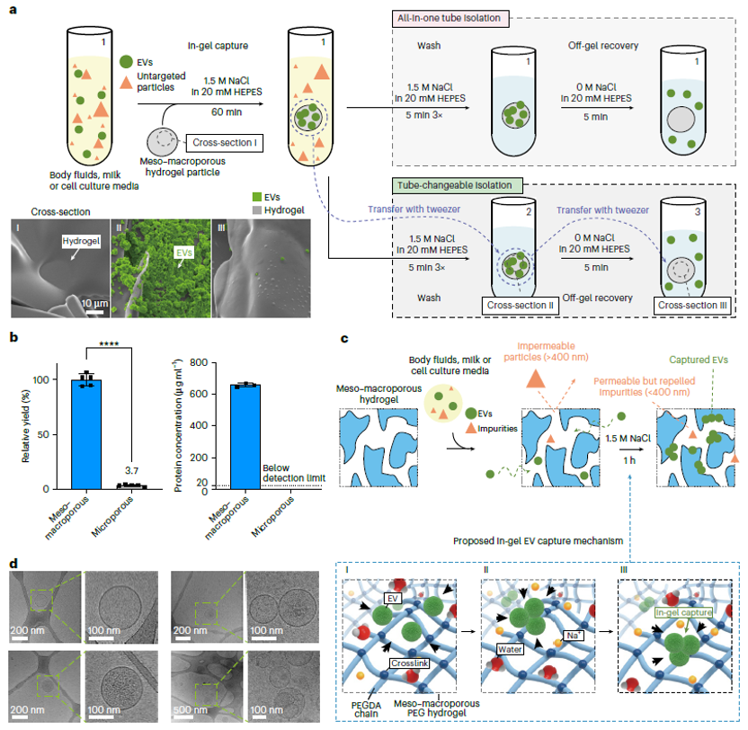 标题:Meso–macroporous hydrogel for direct litre-scale isolation of extracellular vesicles